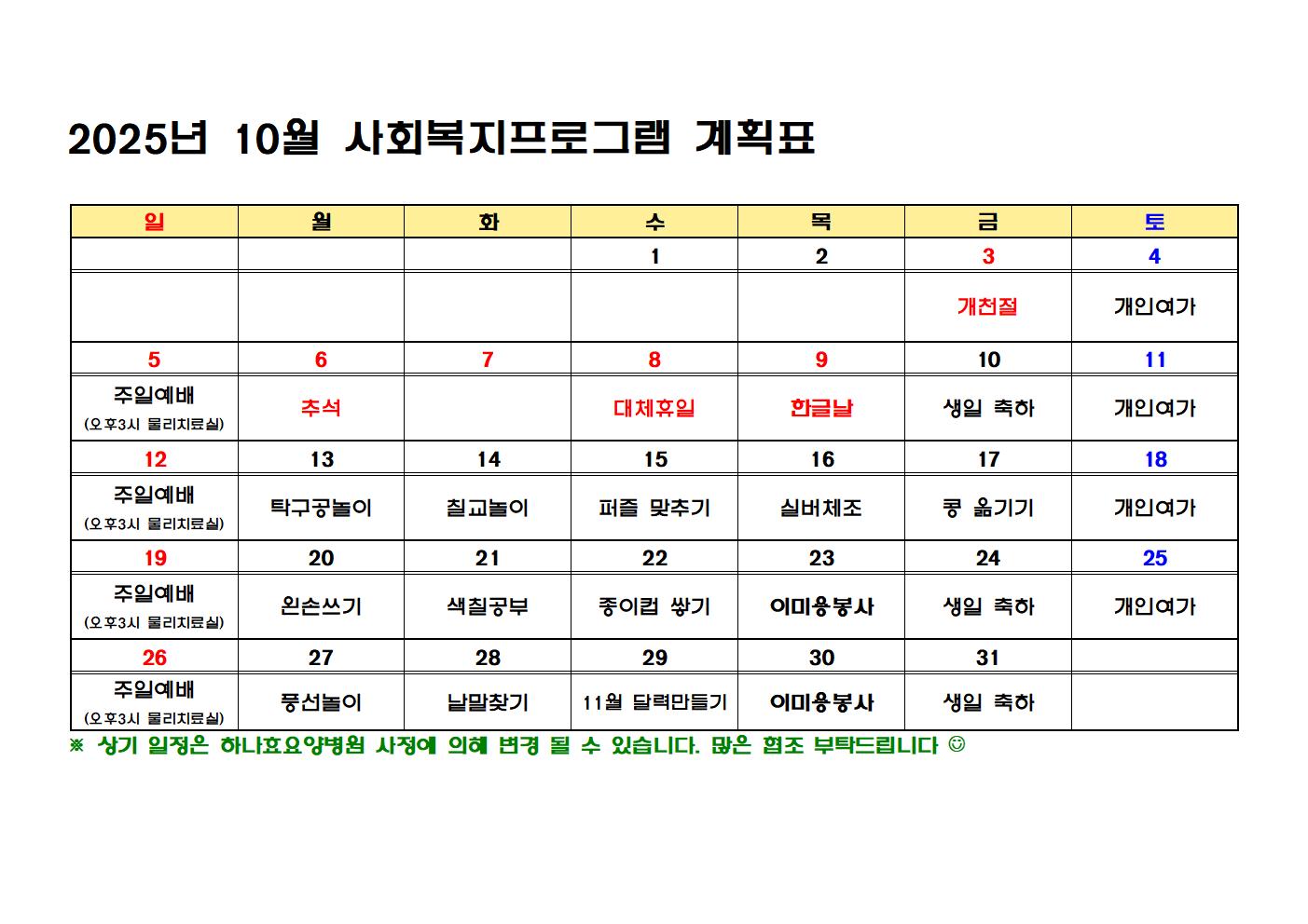 2025³â 10¿ù »çȸº¹ÁöÇÁ·Î±×·¥ °èȹǥ