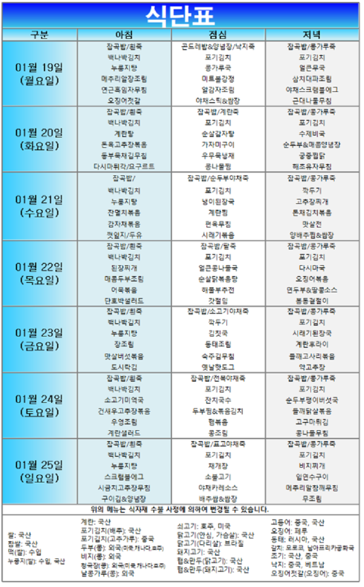 (2026³â) 01¿ù 19ÀÏ~ 01¿ù 25ÀÏ ÁÖ°£½Ä´ÜÇ¥