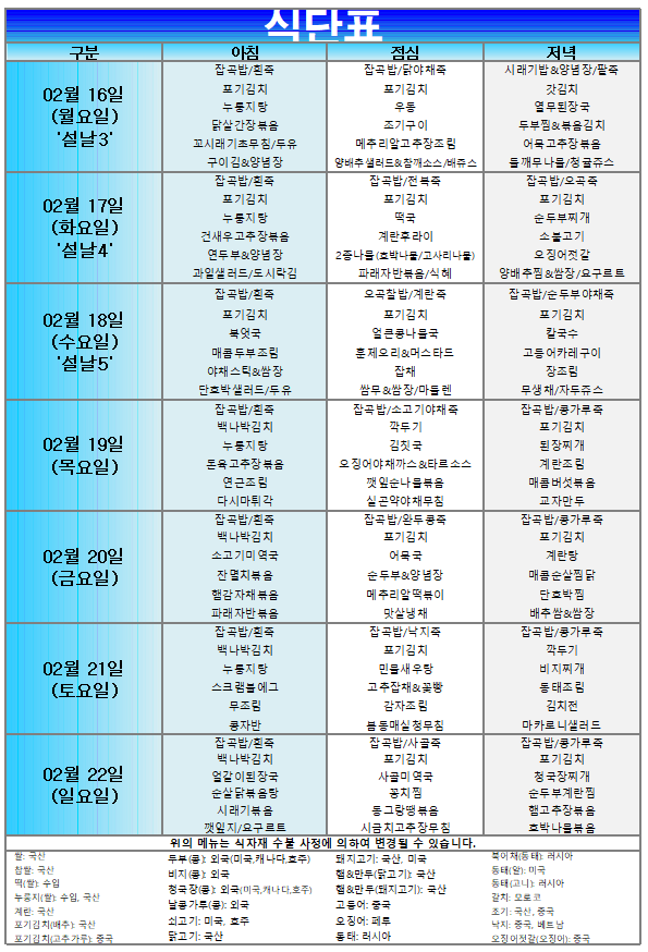 (2026³â) 02¿ù 16ÀÏ~ 02¿ù 22ÀÏ ÁÖ°£½Ä´ÜÇ¥