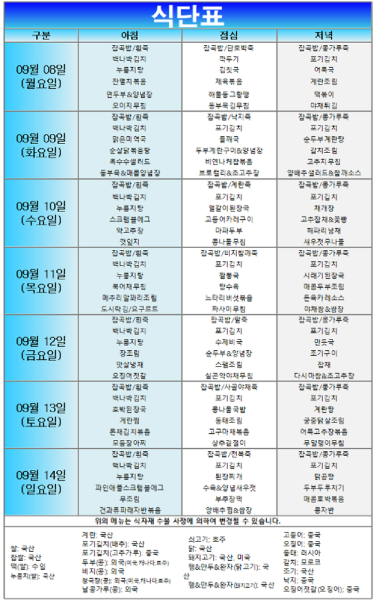 (2025³â) 09¿ù 08ÀÏ~ 09¿ù 14ÀÏ ÁÖ°£½Ä´ÜÇ¥