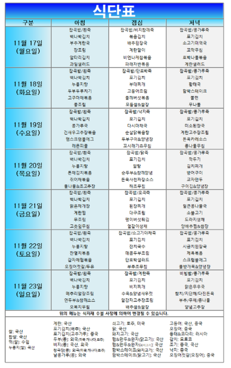 (2025³â) 11¿ù 17ÀÏ~ 11¿ù 23ÀÏ ÁÖ°£½Ä´ÜÇ¥